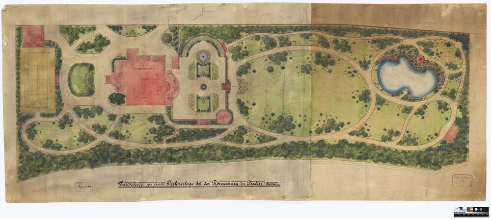 Gartenplan ((Blickrichtung Süden, die Römerstrasse ist oben!)